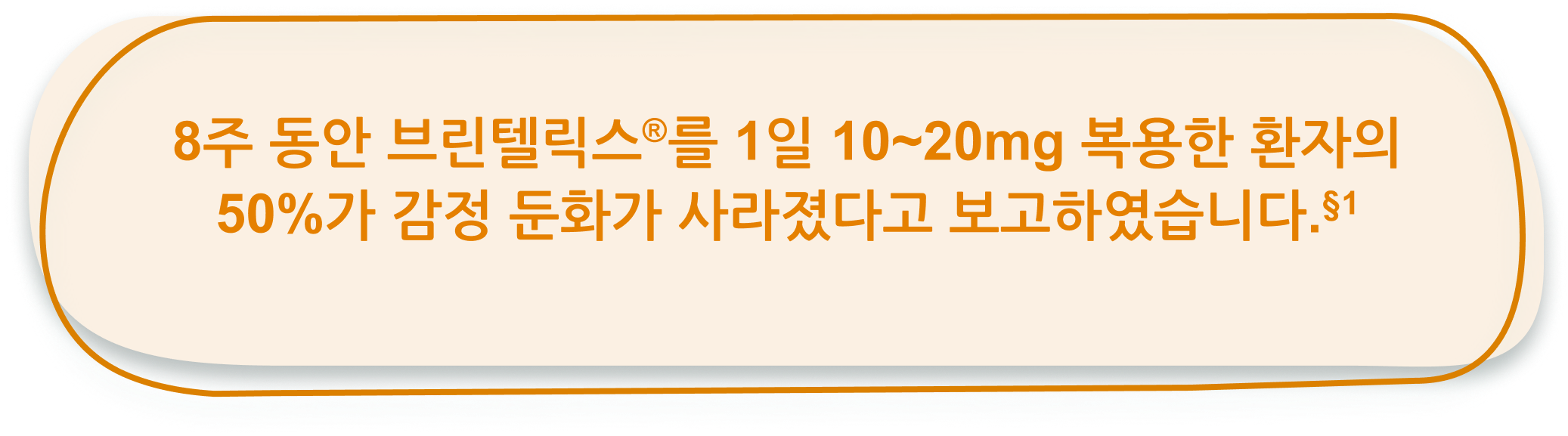 브린텔릭스®는 SSRI/SNRI 치료에 부분 반응‡을 보였던 MDD 환자에서 감정 둔화†를 임상적으로 유의하게 완화하였습니다.¹,³