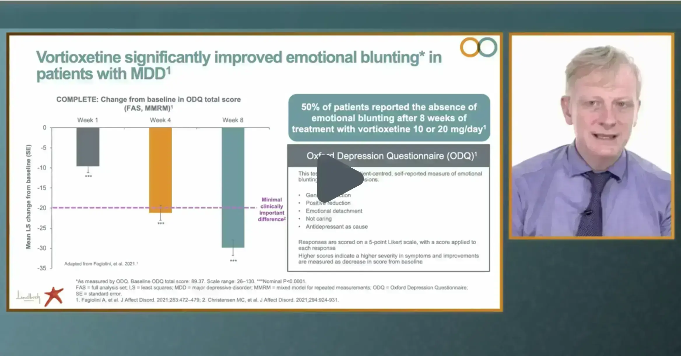 COMPLETE 연구를 통해 감정 둔화(ODQ로 측정)의 개선과 의욕 및 활력 점수(MEI로 측정), 그리고 전반적인 기능 간에 유의한 상관관계가 입증되었습니다.